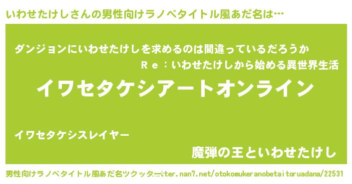 | 胡散臭い通販商品みたいなあだ名 | 『モテモテ間違いなし霊験あらたかなお札…その名も「いわせたけし」』 |