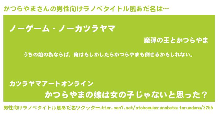 | ファンタジー風あだ名 | 『エターナルカツラヤマー』『カツフェル』 |