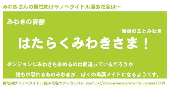 | 胡散臭い通販商品みたいなあだ名 | 『必ず成功する水晶球…その名も「みわき」』 |