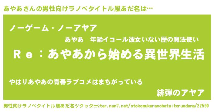 | 意味不明あだ名 | 『自称あやあ』『眠気覚ましガムあやあ味』 |