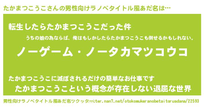 | 女子向けラノベタイトル風あだ名 | 『死神たかまつこうこの再婚』 |