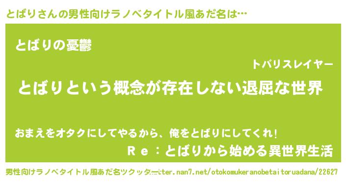 | ヘコむあだ名 | 『とばり(笑)』『とばにゅー』『豆乳』 |