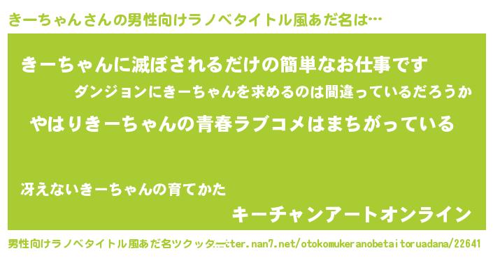 | 女子向けラノベタイトル風あだ名 | 『きーちゃんの雑貨屋さん』 |