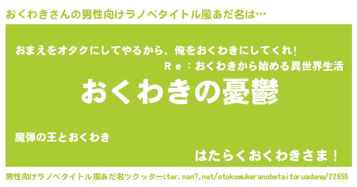 おくわきさんの男性向けラノベタイトル風あだ名をツクッター!