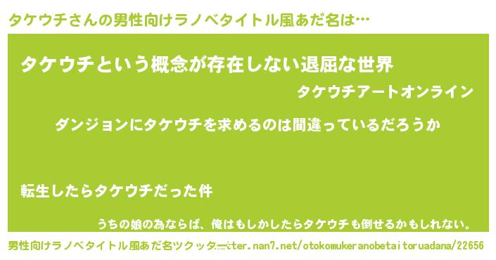 | ヘコむあだ名 | 『タケっぺ』『タケウチ(震え声)』 |