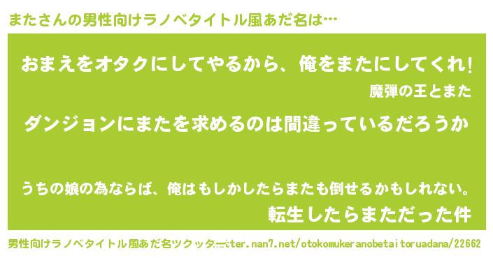 | ヒーロー風カッコイイあだ名 | 『黄金騎士マタ』『慈愛の使者また』 |