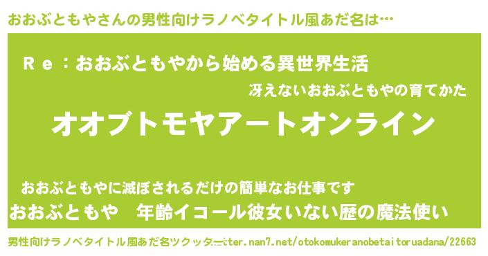 | 女子向けラノベタイトル風あだ名 | 『誰かこのおおぶともやを説明してください! ~契約から始まるウェディング~』 |