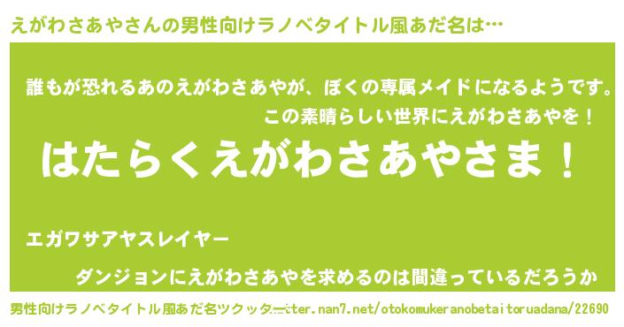 | ヘコむあだ名 | 『えがわさあや(苦笑)』『えがを』 |