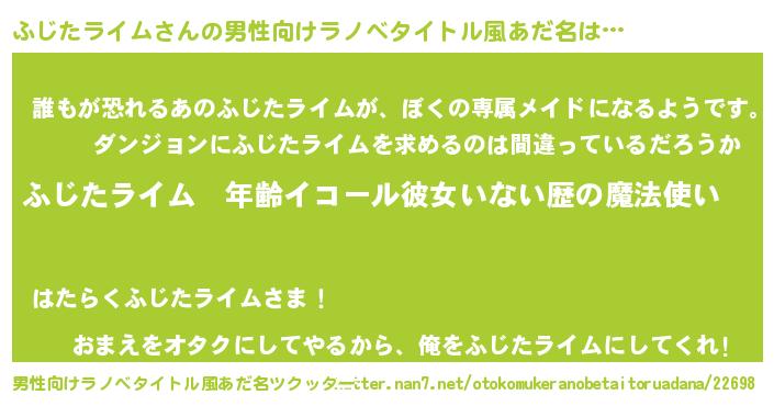 | 伝説のあだ名 | 『古文書に記された暗殺者ふじたライム』 |