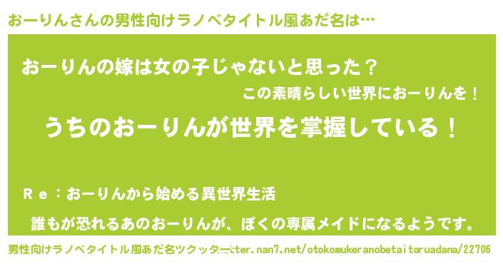 | 胡散臭い通販商品みたいなあだ名 | 『全米が絶賛したサプリメント…その名も「おーりん」』 |