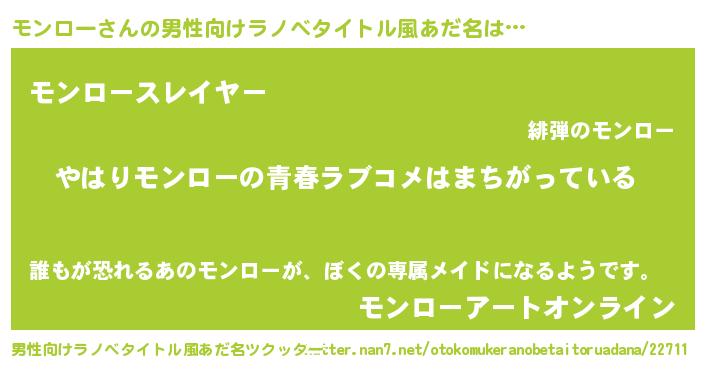 | ヒーロー風カッコイイあだ名 | 『ウルトラモンローマン』『ネオモンロー』 |