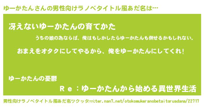ゆーかたんさんの男性向けラノベタイトル風あだ名をツクッター!