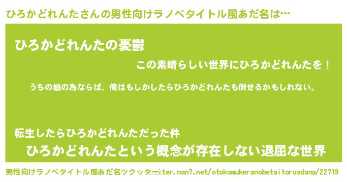 | 胡散臭い通販商品みたいなあだ名 | 『世界が平和になる高級そうな壺…その名も「ひろかどれんた」』 |