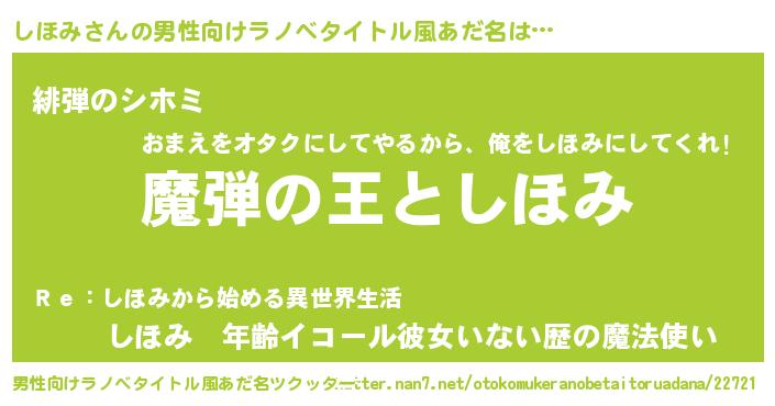 | 意味不明あだ名 | 『住所不定無職しほみ(47歳)』『自称しほみ』 |