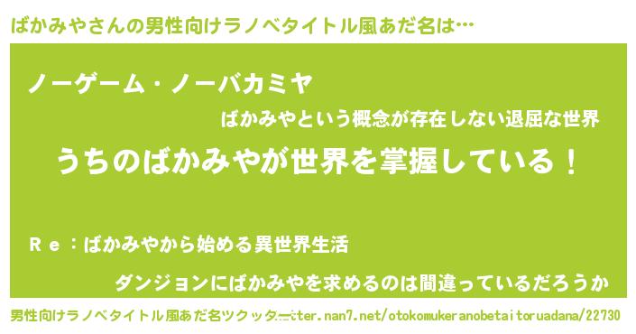 | ヒーロー風カッコイイあだ名 | 『天空の使者ばかみや』『天弓騎士バカ』 |