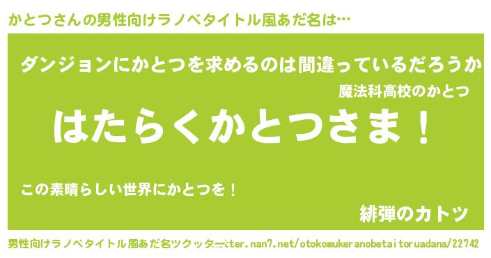 | 胡散臭い通販商品みたいなあだ名 | 『信頼と実績のネックレス…その名も「かとつ」』 |