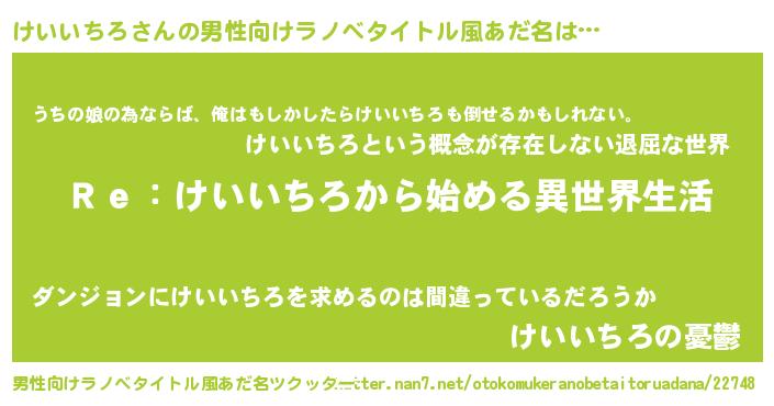 | 女子向けラノベタイトル風あだ名 | 『けいいちろストレイドッグス』 |