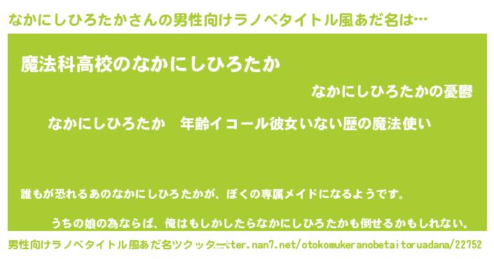 | 女子向けラノベタイトル風あだ名 | 『なかにしひろたかの玉の輿計画!』 |