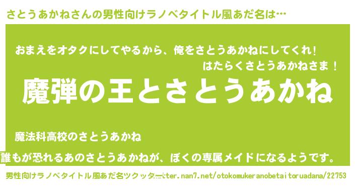 | 意味不明あだ名 | 『住所不定無職さとうあかね(71歳)』 |
