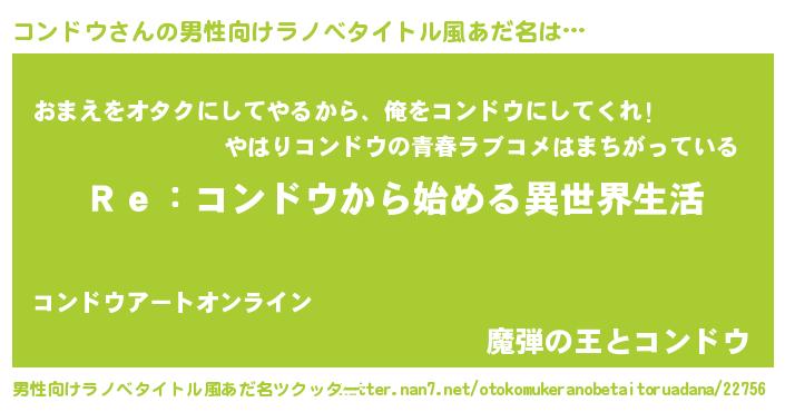 | 意味不明あだ名 | 『自称コンドウ』『コンドウフォーエバー』 |