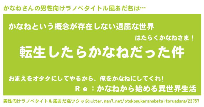 | ヘコむあだ名 | 『かなね(震え声)』『牛乳』 |
