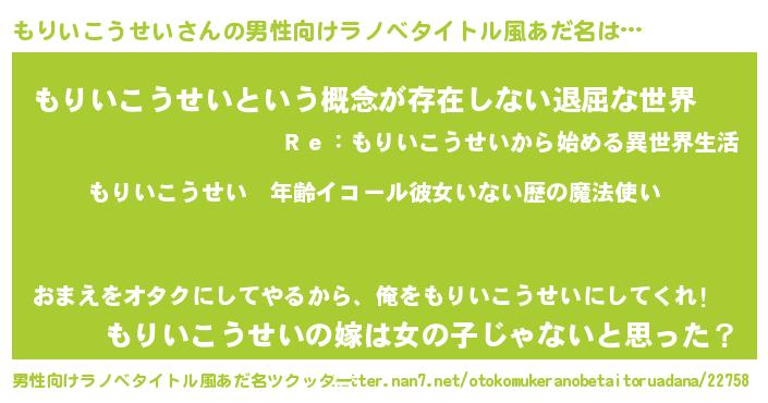 | ヘコむあだ名 | 『もりいこうせい(震え声)』『もりっぺ』 |