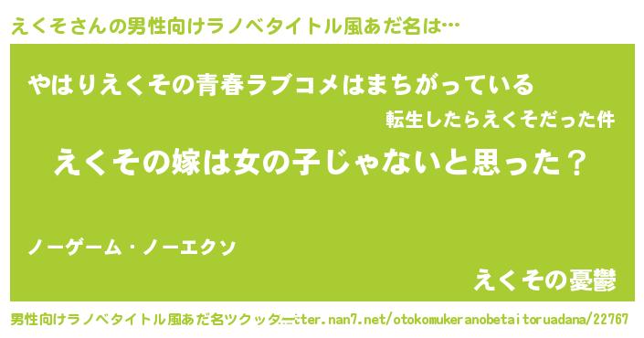 | 女子向けラノベタイトル風あだ名 | 『えくそ様がみてる』『死神えくその再婚』 |