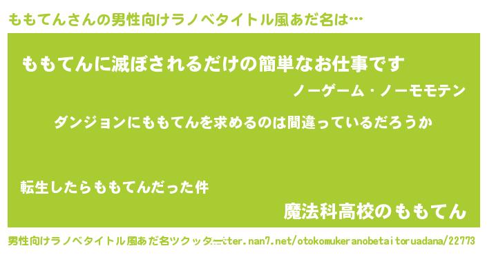 | 女子向けラノベタイトル風あだ名 | 『ももてんの卵を拾いまして』 |