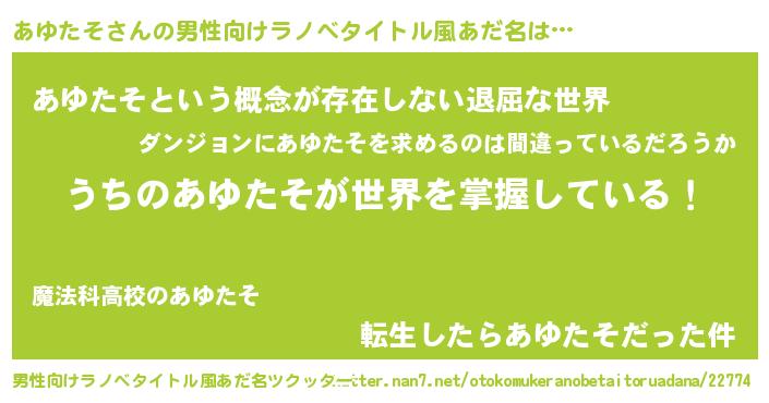 | 伝説のあだ名 | 『古文書に記された暗殺者あゆたそ』 |