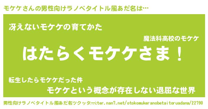 | 意味不明あだ名 | 『永久保存モケケ』『自称モケケ』 |