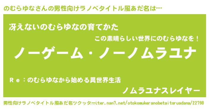| ヘコむあだ名 | 『のむらゆな(笑)』『のむっぺ』 |