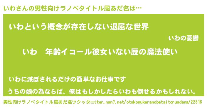 | 女子向けラノベタイトル風あだ名 | 『いわの玉の輿計画!』『いわの婚約者』 |