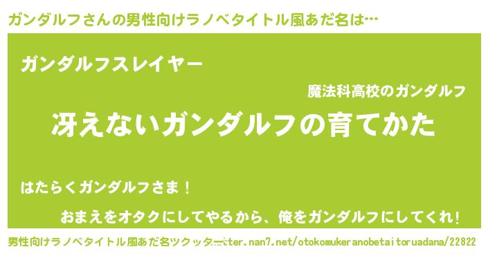 | 胡散臭い通販商品みたいなあだ名 | 『お金では代えられないマグネット磁石…その名も「ガンダルフ」』 |