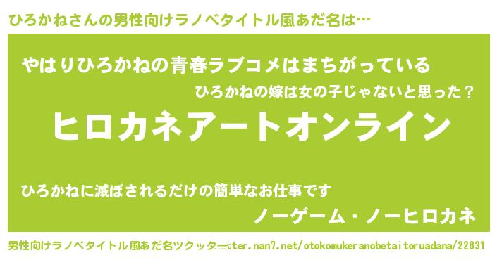 | 女子向けラノベタイトル風あだ名 | 『ひろかね姫と円卓の騎士』 |