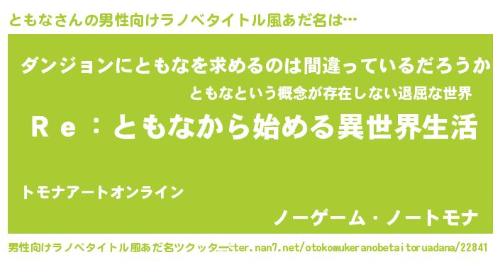 | 女子向けラノベタイトル風あだ名 | 『闇のともな』『ともなは平凡を望む』 |