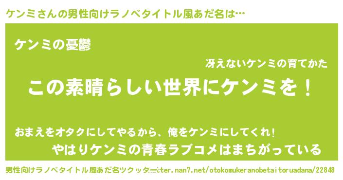 | 意味不明あだ名 | 『住所不定無職ケンミ(41歳)』 |