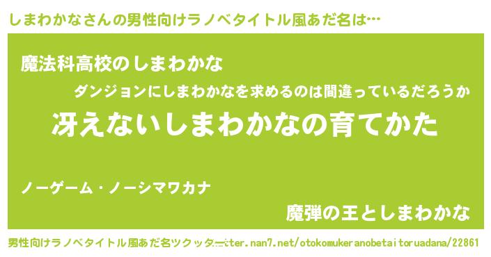 | 意味不明あだ名 | 『自称しまわかな』 |