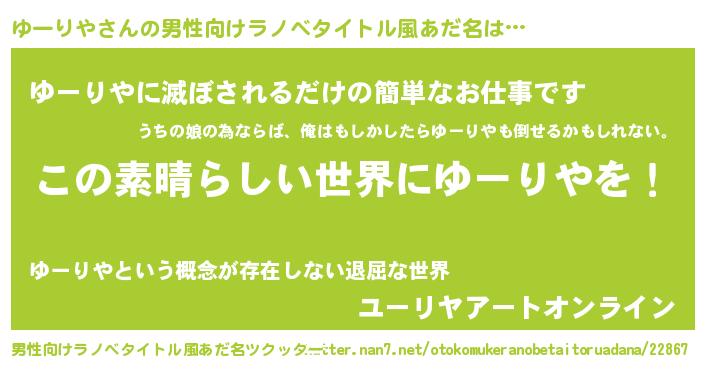 | 女子向けラノベタイトル風あだ名 | 『乙女ゲームの破滅フラグしかない悪役ゆーりやに転生してしまった…』 |