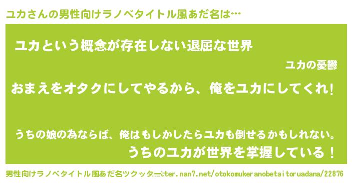| 意味不明あだ名 | 『眠気覚ましガムユカ味』『永久保存ユカ』 |