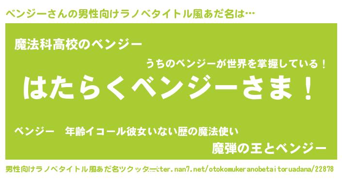 | 意味不明あだ名 | 『自称ベンジー』『めかぶ科ベンジー属』 |