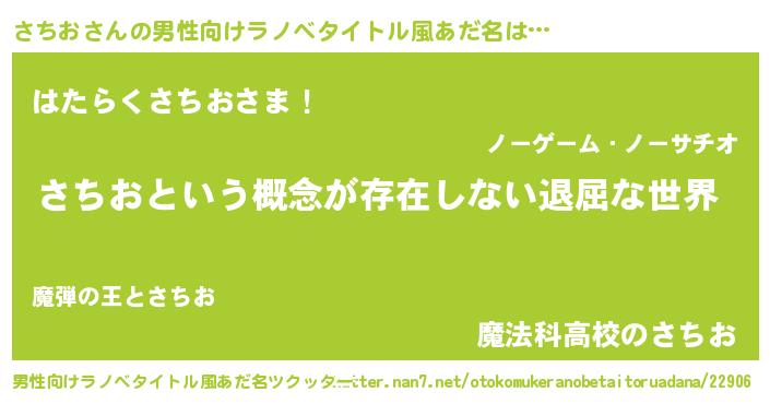 | 女子向けラノベタイトル風あだ名 | 『異世界で失敗しない100のさちお』 |