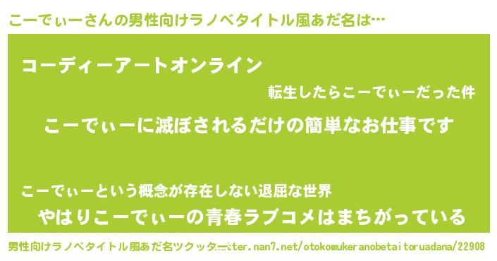 | 胡散臭い通販商品みたいなあだ名 | 『億万長者になれるブレスレット…その名も「こーでぃー」』 |