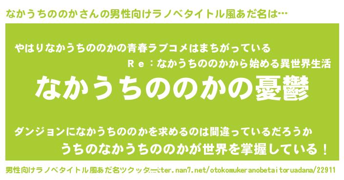 | 胡散臭い通販商品みたいなあだ名 | 『必ず成功する霊験あらたかなお札…その名も「なかうちののか」』 |