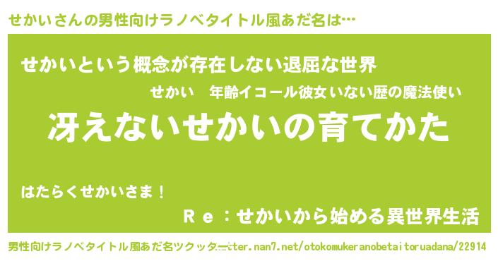 | ヘコむあだ名 | 『せかい(苦笑)』『せかにー』 |