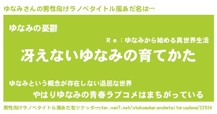 | 胡散臭い通販商品みたいなあだ名 | 『モテモテ間違いなし霊験あらたかなお札…その名も「ゆなみ」』 |