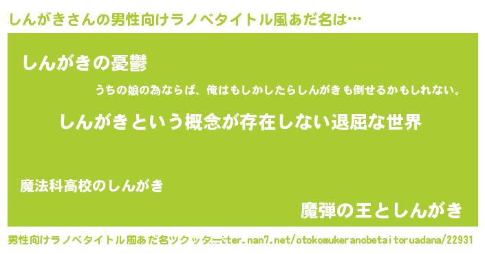 | 意味不明あだ名 | 『永久保存しんがき』『ペロリンしんがき』 |