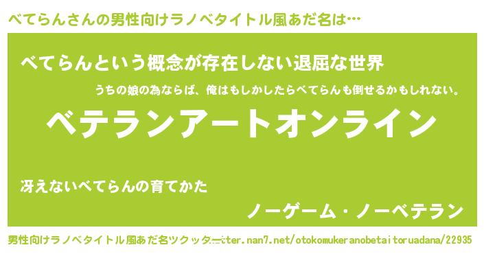 | 意味不明あだ名 | 『ペロリンべてらん』『永久保存べてらん』 |