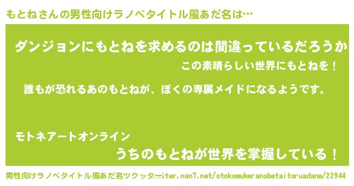 胡散臭い通販商品みたいなあだ名 | 『来世でも幸せになれる健康食品…その名も「もとね」』 |