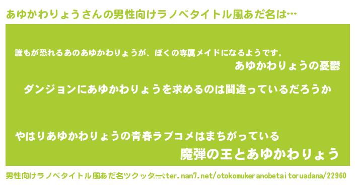 | 意味不明あだ名 | 『とにかく怪しいあゆかわりょう』 |