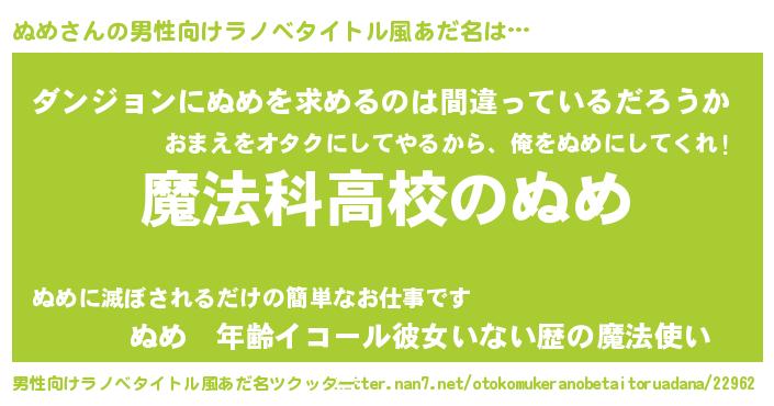 | 女子向けラノベタイトル風あだ名 | 『ぬめなんてお断りですっ。』 |
